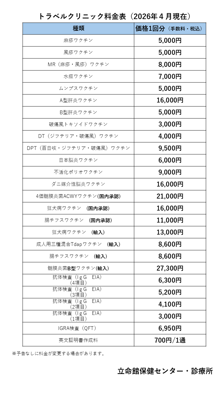 保健センターで接種できるワクチンは「ワクチンリストと価格表」でご確認ください。 -