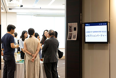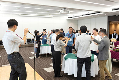 レセプションパーティーは幹事のKIM Minsuさん(2023年3月学部卒業)の司会で進行、森岡 真史学部長による乾杯発声でスタートしました。東京での開催は6年ぶりとなり、参加者は、懐かしい先生方、同級生、先輩・後輩との再会を喜び、楽しい時間を過ごしました。