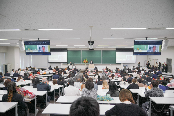 国際関係学部卒業式・国際関係研究科学位授与式には、国際関係学部卒業生、国際関係研究科修了生、ご家族・ご親戚の皆様や教職員が出席。卒業生・修了生の巣立ちを祝いました。