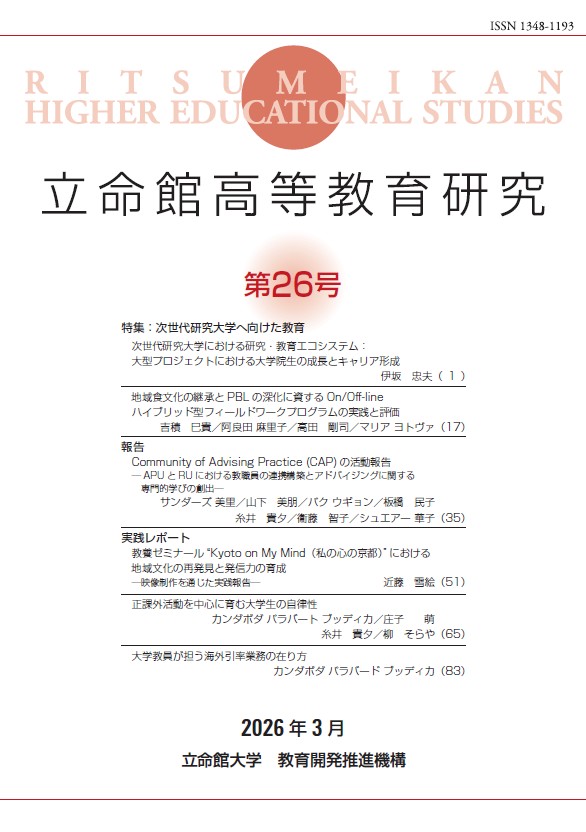 - 紀要冊子の送付を希望する方はfd71cer[a]st.ritsumei.ac.jpまで、件名に『立命館高等教育研究』送付希望と記載の上、