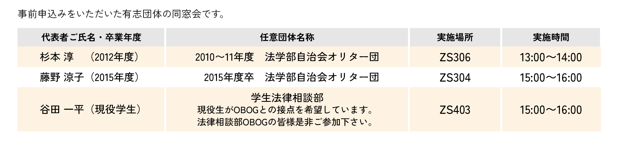 同日は、法学部同窓会総会が以下の通り、開催されます。