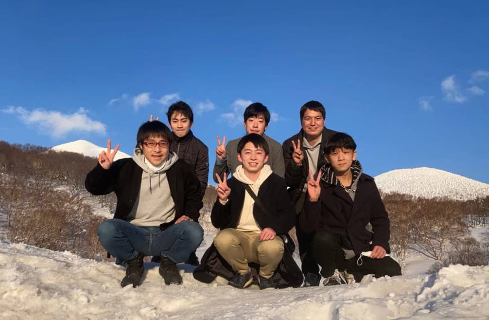 鉄道研究会の同期との卒業旅行での1コマ ※下段中央が大野