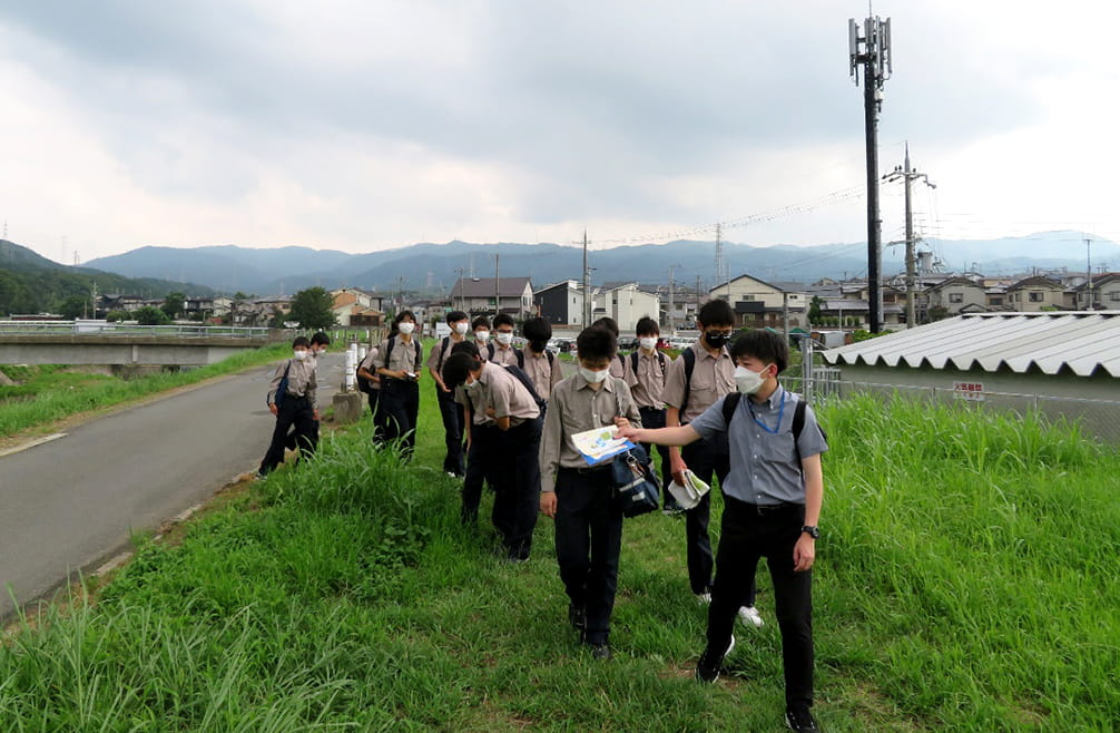 地理への興味を持ってもらえるよう、希望する生徒と一緒に街歩きのフィールドワークを行うこともあります。昔の地図と現在の地形を見比べながら、時代とともに市街地がどのように広がっていったか、水害時にどこまで浸水したのかなど、NHK『ブラタモリ』のような内容で、私自身も楽しみながら計画しています。コアなファンになってくれている生徒、地理を志すようになった生徒の存在が励みになっています。
