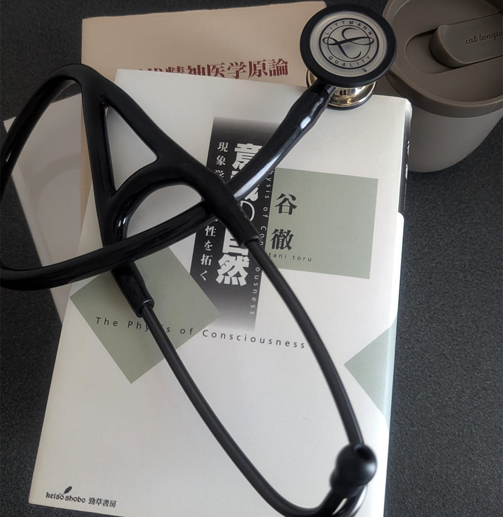 卒業後、博士課程前期課程に進学して哲学の研究をするうち、学んだことを現実に役立たせたいと考えるようになったのが、精神科医を志したきっかけです。医学には、精神科医で哲学者でもあるヤスパースが始めた精 神病理学という分野があり、私もそうした臨床の場を目指したいと思いました。一念発起して受験勉強し、医学部2年に編入、卒業。今は精神病理サークルがあることから選んだ京都大学医学部附属病院で初期研修を行っています。