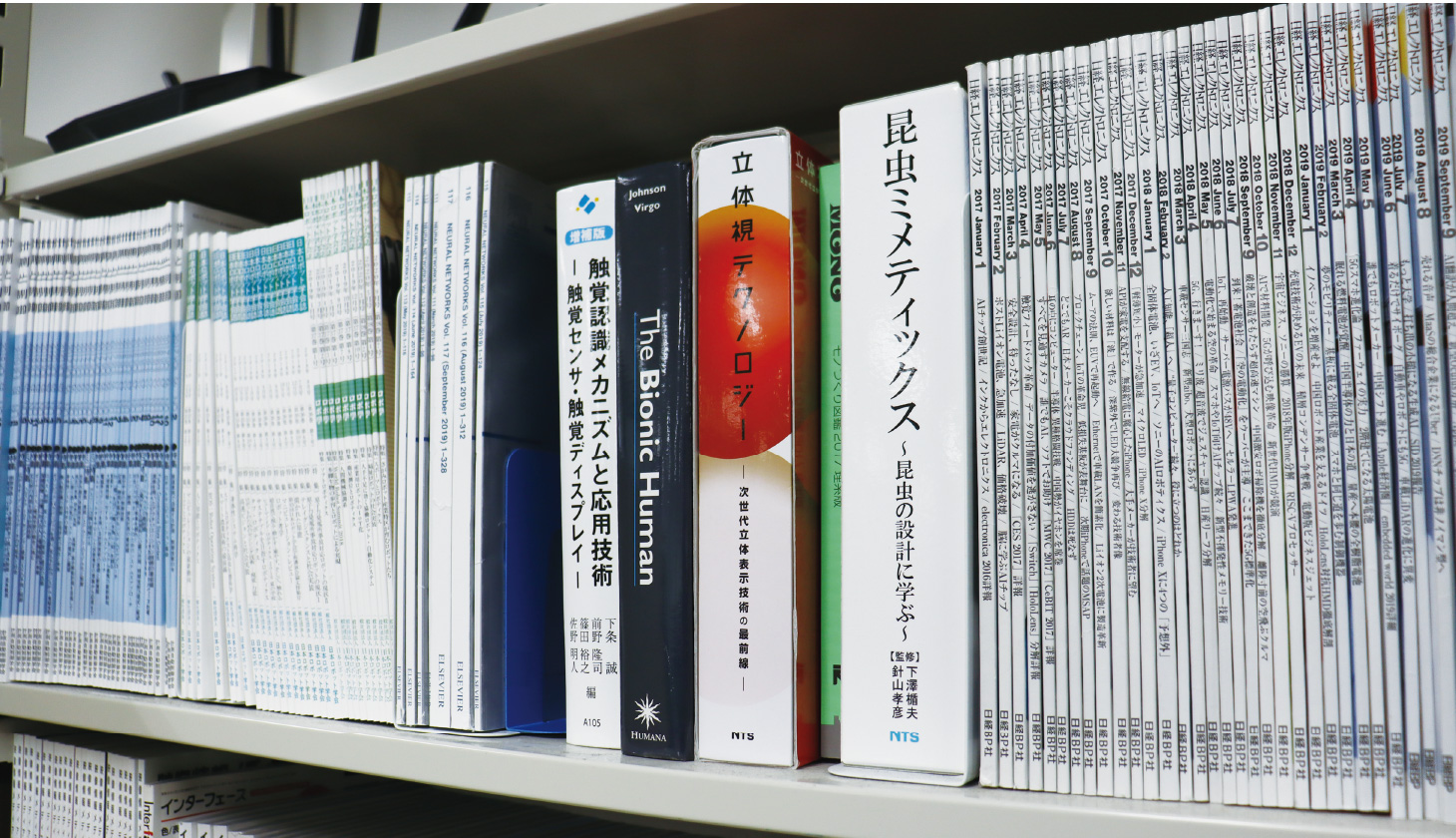 研究を進める中でのニーズがどこにあるかのヒントや、ニーズを実現するための技術情報などは、図書館のリソースを使っています。ニーズ自体の掘り起こしの際も、また解決策を考える際も、自分で考えるための材料として『入力』は、非常に大事にしています。『入力』のためには、様々な人から話を聞いたり、多くの資料や論文が材料となるわけですが、論文や資料を探す際には図書館のリソースを積極的に活用しています。立命館大学ではデータベースが充実していますので、図書館に出向かずとも自身のオフィスで論文などの資料から情報が得られるのは非常に便利です。