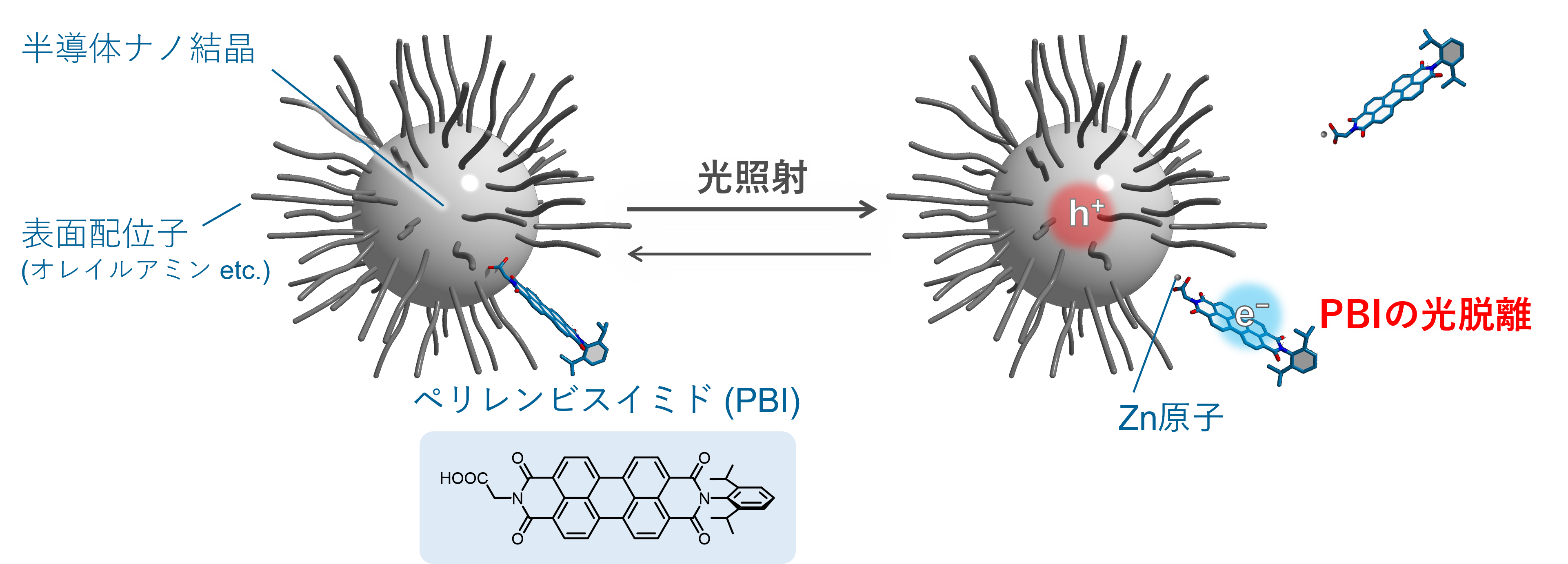 • 硫化亜鉛ナノ結晶におけるペリレンビスイミド配位子の光誘起擬可逆脱離