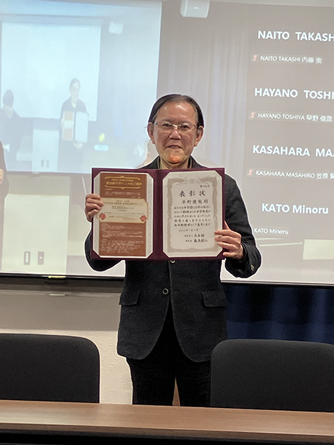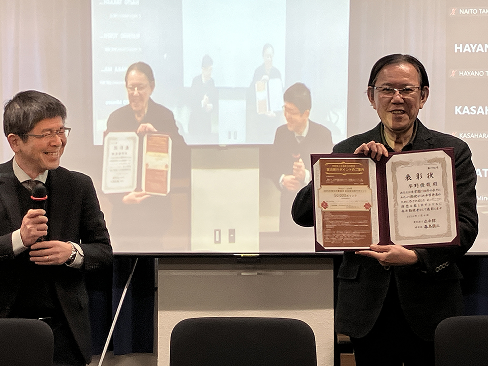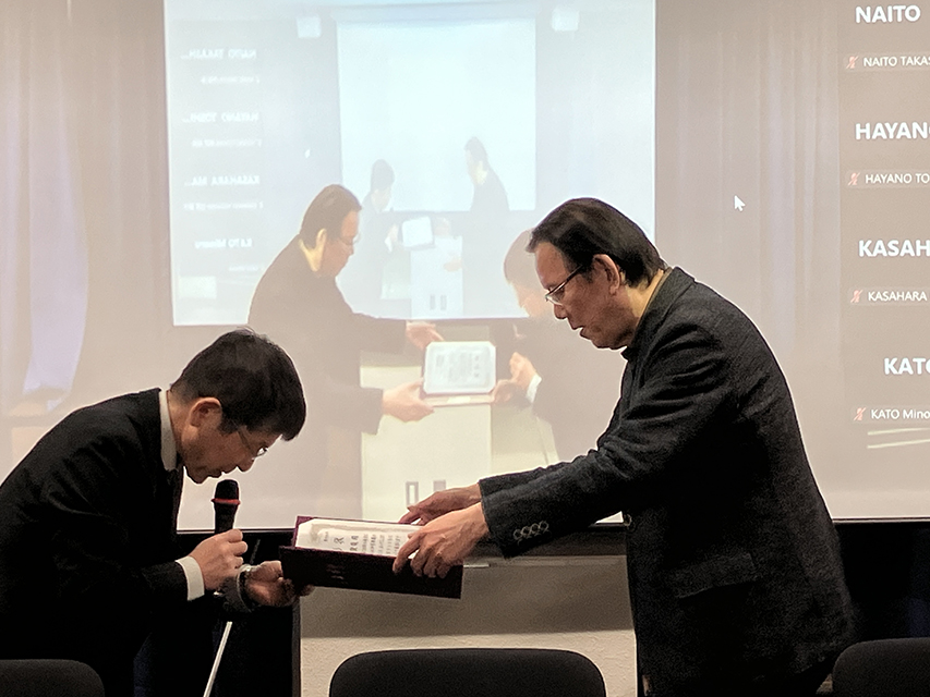 生命科学部長から永年勤続表彰の賞を授与されました。
