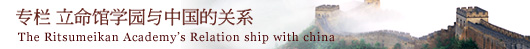 立命馆学园与中国达成友好协议的大学、机构已达43个。在立命馆大学的中国留学生有438名,立命馆亚太大学有338名,共计776名。从立命馆大学到中国留学(包括短期)的学生有58名,立命馆亚太大学有58名,共计91名。同时作为政府开发援助(ODA)对中国内地的人才培训事业的一部分,本校与日元贷款机构国际协力银行签定协议,实施了“中国大学管理运营干部特别研修项目”。从2004年8月29日的重庆研修团31名研修生开始,已经有约10个研修团,283名来自甘肃、江西、吉林等省的副校长、教授以及教育厅的各位管理干部参加了研修班。今后预定有湖南省、新疆维吾尔自治区等地区的研修生将来校学习,成为我们的朋友。另外我们现在正在准备将“有关环境技术的大学教师的教育能力提高项目的开发”具体化,明年2月以后将接受研修生,开展我们立命馆所能进行的援助。