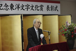 表彰式後の挨拶で白川静名誉教授は「漢字は東アジアの共通語として、長く平和に資してきた。しかし先の戦争での過ちにより、その共同性の喪失が起こった。国内外で漢字文化の認識を高め、東洋の精神的連帯を取り戻したい」と語り、今回の受賞者の業績を称えるとともに、今後の東洋文字文化研究がひろく社会で行われることに期待を示した。