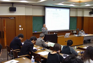 講義後の質疑応答では、2004年に建てられたガラス張りの新社屋のイメージについて受講生から質問があり、「当社の製品イメージの持つ先進性、そして当社が開発した蓄電型太陽光発電システムなどを活用した環境への配慮、そして京都らしい伝統の表現(夜にはビル全体を行灯のように灯しライトアップを行っている)」と3つの明確なコンセプトを解説。烏丸通と御池通の交差点角にある、京都の新たなスポットになりつつあるニチコンビルについて紹介した。