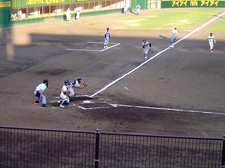 3塁走者藤崎君が生還、2-0とする