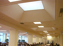 天井から自然光をたくさん取り入れて、明るく開放的な雰囲気です。 暖色系のライトを使っているのは、料理をよりおいしく見せる効果があると言われているからなんです。温かみのある空間で食事をもっと楽しめそうですね!