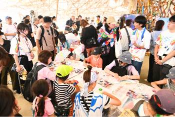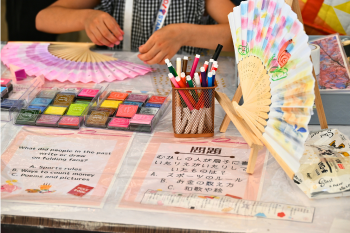 当日は、扇子や水引づくりを体験していただき、日本文化に親しむ機会を提供しました。また、扇子や水引にまつわるクイズも用意し、学びながら制作を楽しむ参加者の姿が印象的でした。特に子どもたちは、自由な発想で扇子に思い思いのデザインを描き、個性豊かな作品に仕上げていました。水引づくりの難しい作業行程は学生が積極的にアドバイスしながら、世界に一つだけの作品を作り上げていました。