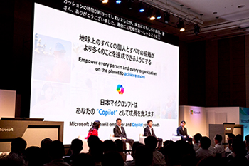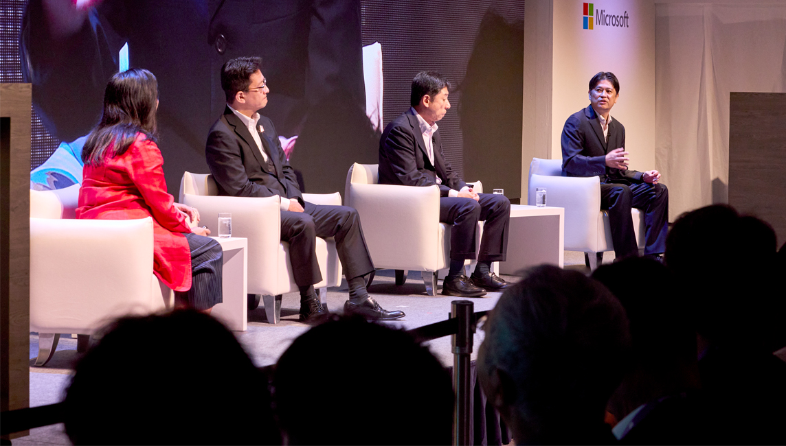 パネルディスカッションには、金融・製造・教育の各分野でAI活用を推進する3人のリーダーが登壇。日本マイクロソフト株式会社 代表取締役社長 津坂美樹氏の進行のもと、生成AI時代の挑戦と展望について議論しました。