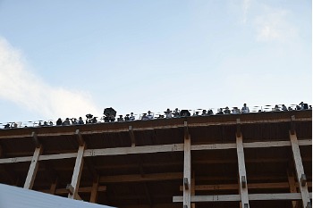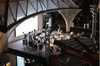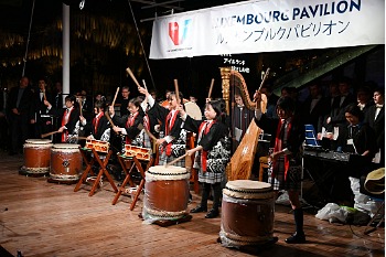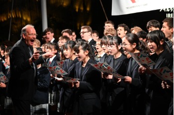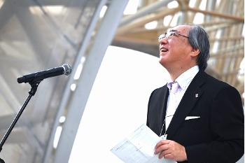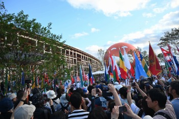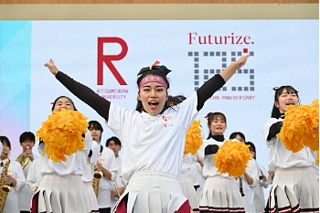 閉幕1週間前の週末ということもあり、万博会場来場者数は20万人超。学校法人立命館 仲谷善雄総長の挨拶では、大屋根リングの上からご観覧のお客様に手を振るシーンも見られ、ステージ周辺だけでなく大勢のお客様にご覧いただきました。立命館学園創立125周年を盛り上げる「立命館の集大成」ともいえる本企画。ご来場くださった皆様に改めて感謝申し上げます。