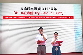 立命館主催企画のフィナーレを飾ったのは10月5日(日)大阪ヘルスケアパビリオン「リボーンステージ」で実施した「オール立命館Try Field in EXPO」。司会は立命館大学放送局(RBC)の学生が務め、日英二言語で進行しました。