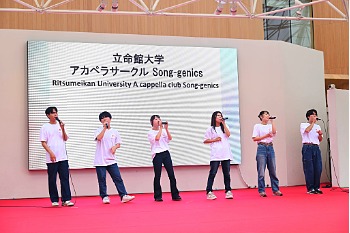 開幕初日の立命館小学校合唱部とルクセンブルクの男声合唱団「プエリ・カントーレス」とのコラボレーションステージを皮切りに、附属校、立命館アジア太平洋大学(APU)、立命館大学の児童、生徒、学生、教職員が様々な企画を実施し、多くの学びの機会を得ることができました。
