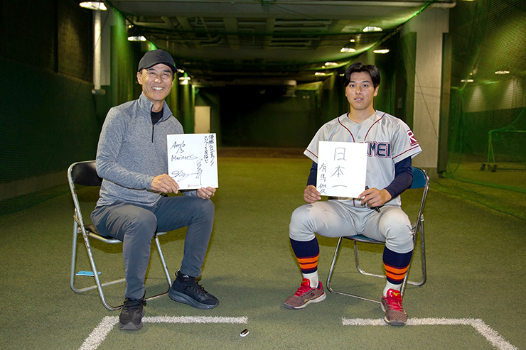 長谷川:立命館からプロ野球選手は多く輩出しているけど、米メジャーリーガーが少ない。私の(米メジャーリーグでの)ゴールよりも有馬くんにはもっともっと上を目指しほしい。