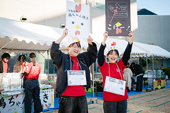 また、キャンパスのさまざまな場所で、多くの模擬店や展示、音楽ライブイベントも開催。来場した方々が思い思いに楽しんでいました。また、キャンパス内2カ所のエリアでそれぞれ商品を購入して参加するくじ引きで、割引チケットがもらえる「BKCトレジャーハンター」も開催され、抽選所の「宝島」は多くの人でにぎわっていました。