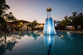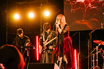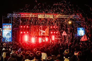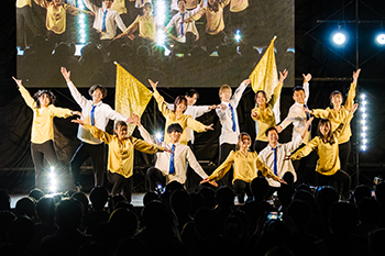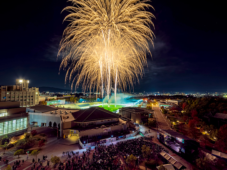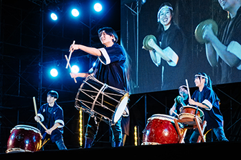 エンディングパフォーマンスでは、夕闇に引き立つ幻想的な照明のもと、伝統芸能サークル「和太鼓ドン」、軽音サークル「Free Music Circle PEACE」「BRISE MUSIC」による迫力満点の演奏が行われ、会場からは熱い声援と拍手が送られました。