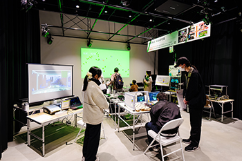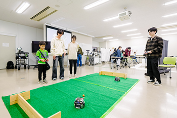24年4月に竣工したH棟では、学内のゼミや研究室が集まり、研究成果を紹介する「Labo企画」が開催。また、いばらきフューチャープラザのイベントホールでは、「企業ブース企画」として、地域の協賛企業による展示や体験イベントが行われ、どちらの会場も訪れた親子連れなどでにぎわいました。