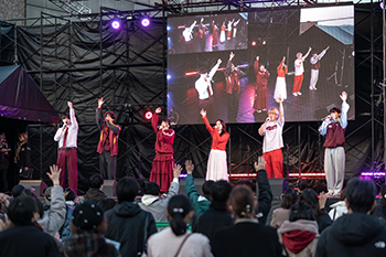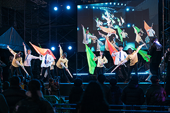 日が暮れると、中央ステージで衣笠祭典を締めくくるエンディング企画がスタート。創造的な演出の中、チアダンスサークル「BLENDERS」とストリートダンスサークル「舞style」による華麗なパフォーマンスが繰り広げられ、会場の観客たちからは熱い声援と拍手が送られました。