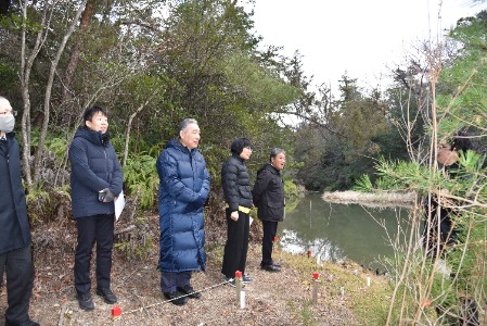 その後、島田幸司 総合企画室 副室長(経済学部 教授)より、立命館学園のネイチャーポジティブに関する取り組み紹介が行われ、本学出席者との意見交換が行われました。また、現地見学も実施され、緑地の成り立ちや特徴的な環境について説明が行われました。