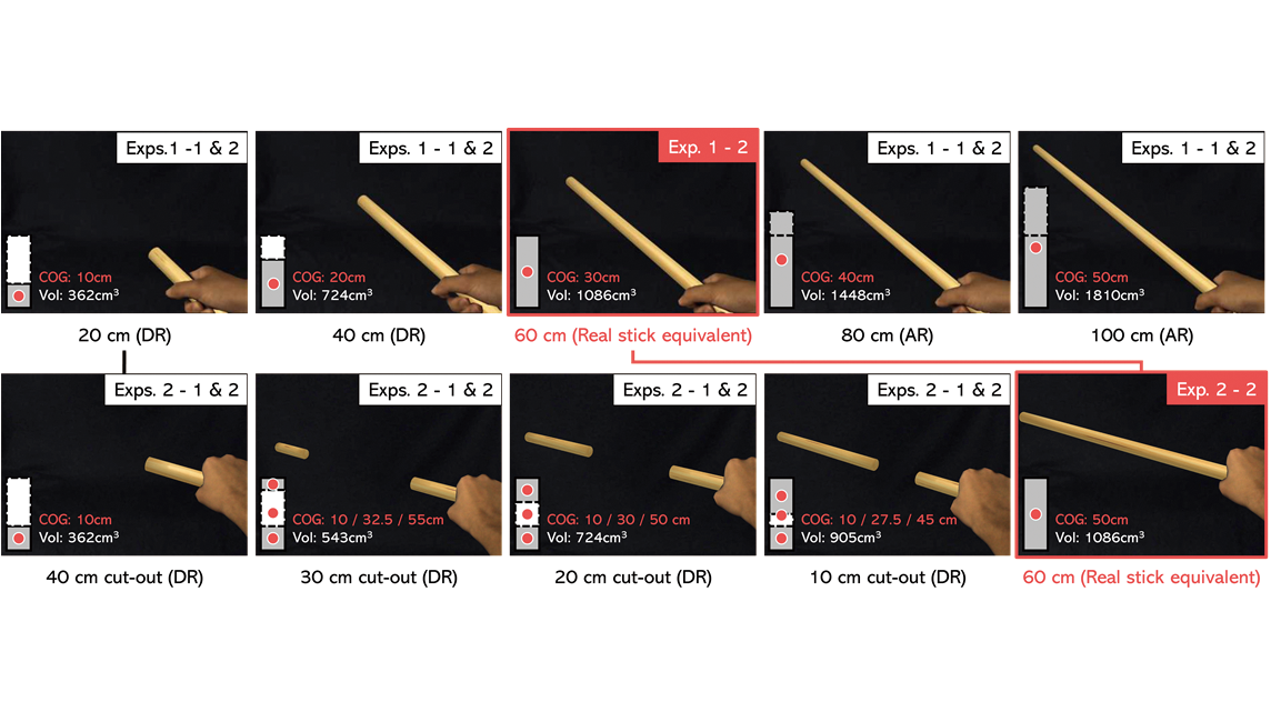 棒の見かけの長さが違うと、感じる重さも変化する? 拡張現実感(AR)技術と隠消現実感(DR)技術で「重さの錯覚」の実証とモデル化に成功
