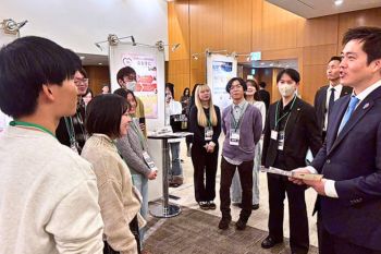 2月17日のポスターセッションでは、「NEXT KANSAI フォーラム2026」の講演会に登壇された大阪府の吉村洋文知事が視察され、「おおきに」の学生と言葉を交わす場面もありました。