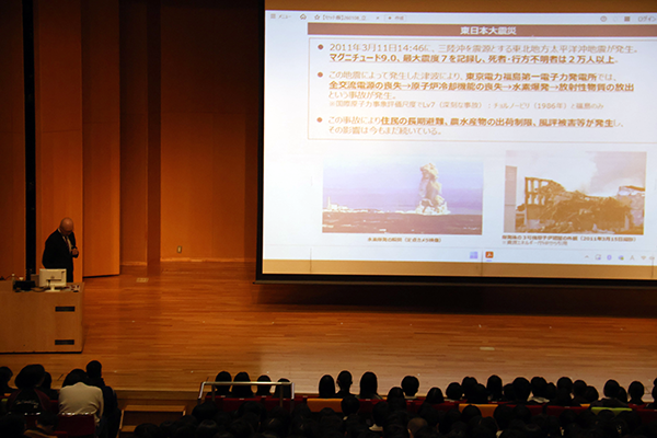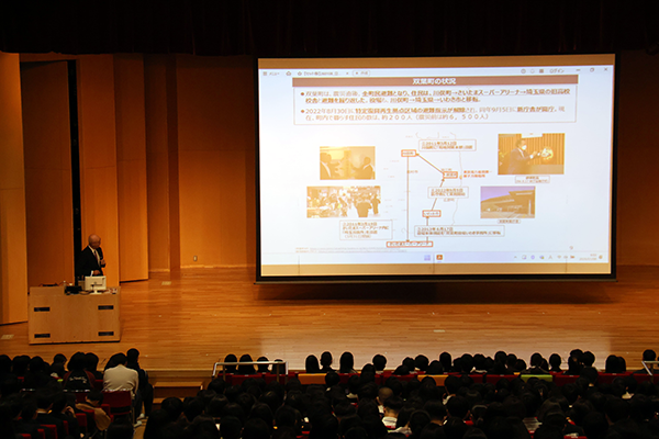 片岡さんは、東日本大震災後の福島第一原子力発電所の廃炉対応をはじめ、福島を中心とした被災地の産業再生に向けたさまざまな支援に携わってこられました。講演では、普段なかなか聞くことのできない被災地復興の最前線での取り組みについて、具体的なご経験を交えてお話しいただきました。生徒たちは、東日本大震災が社会に与えた影響の大きさや、復興に向けた取り組みの重要性をあらためて実感し、深い学びを得ることができました。