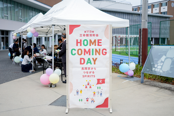 恩師授業では、真剣に授業を聞く卒業生の姿が見られ、恩師との貴重な時間を楽しみました。キッチンカーを含めて8店舗出店された模擬店も好評で、こども縁日やスタンプラリーなどは「子どもも楽しめた」と喜びの声を多数いただきました。HCDの締めくくりは、清和会記念ホールにて立命館中学校・高等学校吹奏楽部によるジョイントコンサートで盛況のうちに閉幕しました。先生方や生徒さん(約200名)にもお手伝いいただき、当番学年会も貴重な企画に携わり、文化祭のような気持ちで楽しませていただくことができました。