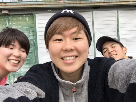 基礎演習のクラスで新入生たちのサポートに取り組むオリターの学生さんたちは2回生で、彼らをさらに土台として支えるのが3回生の執行部です。執行部の3人(写真)もまた、どうすれば2回生のオリターたちが1回生をよりよくサポートできるかに真剣に取り組んできました。写真にも仲の良いチームワークが現れています。