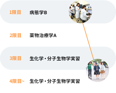 3限の病態学は専門科目でとても内容が難しく大変ですが、頑張ってついていきました。