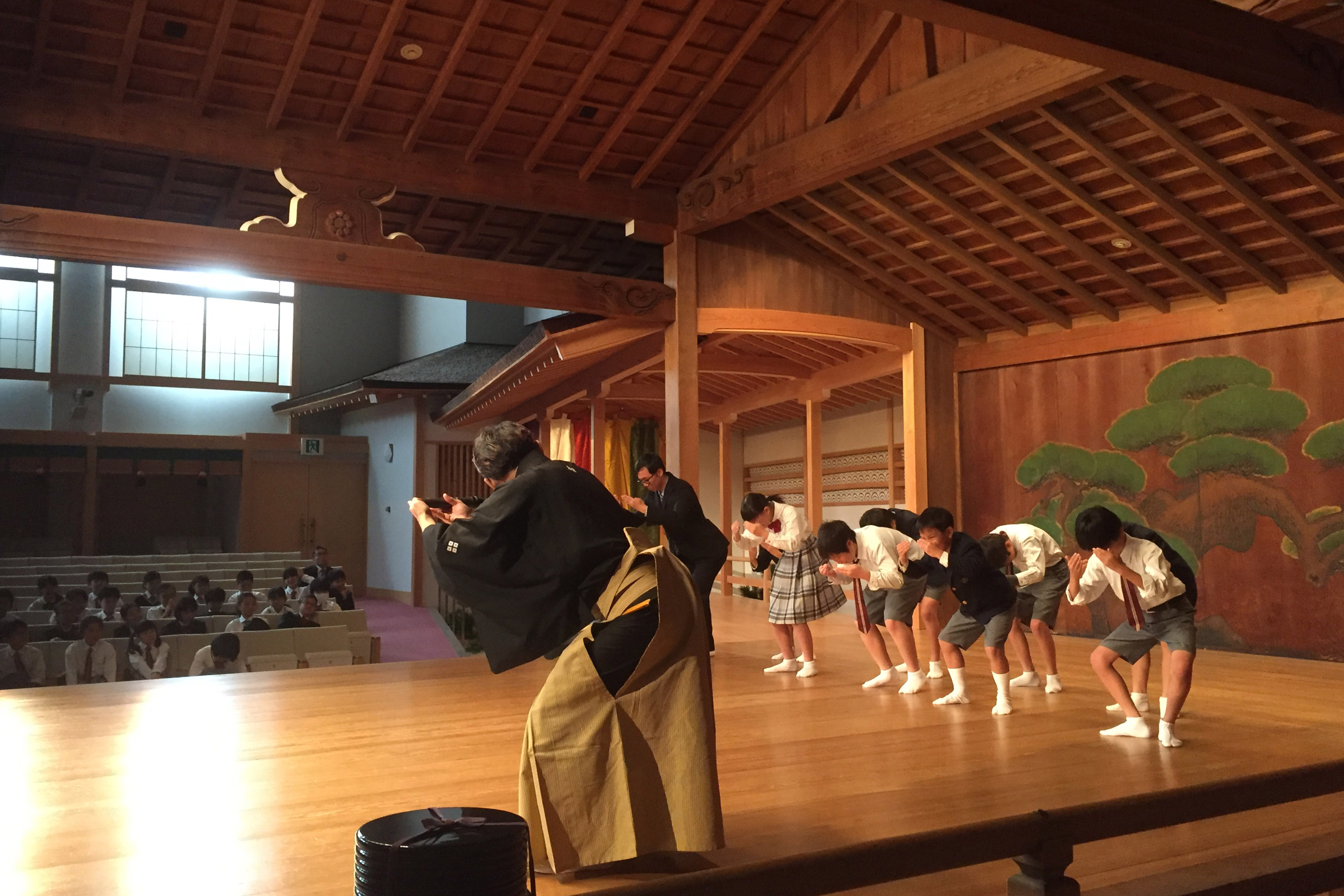 5・6年生は金剛能楽堂や南座など本格的な舞台に出かけ、総合的な「舞台芸術」と古典特有の表現方法などの日本文化の伝統と歴史を肌で感じます。