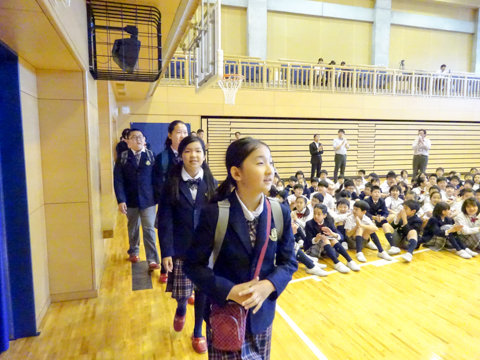 北京大学附属小学校の子ども達は、朝に本校のサポーターズの学校案内を受けた後、体育館で歓迎会に出席しました。上手な日本語のスピーチを披露してくれました。