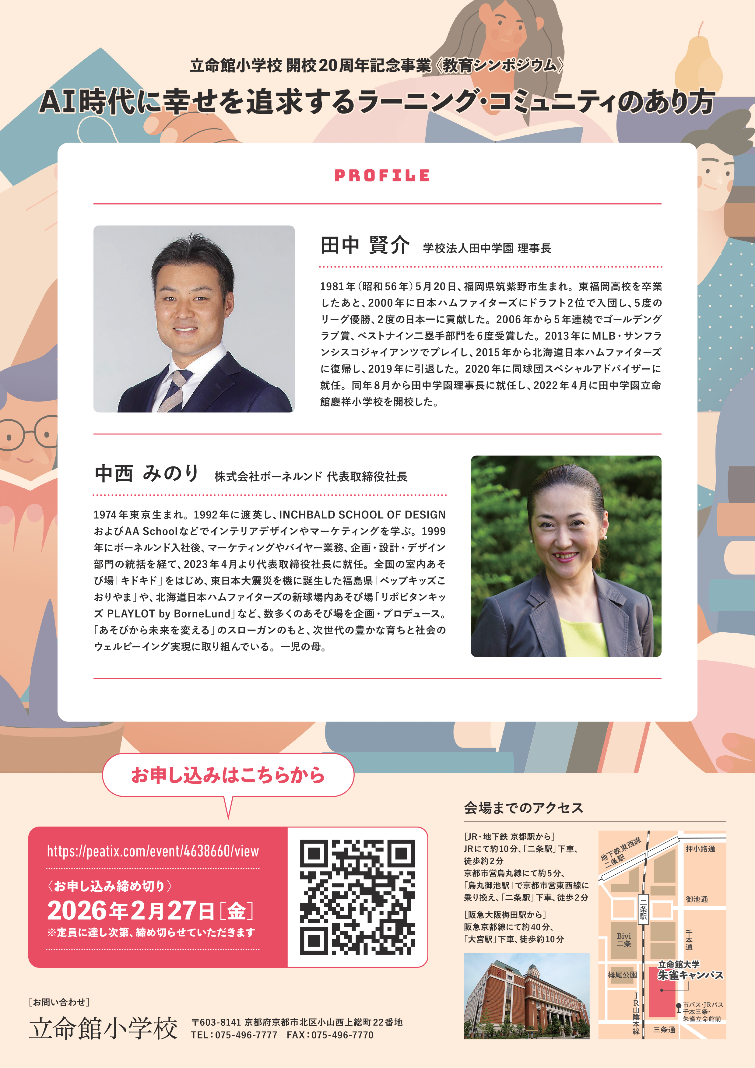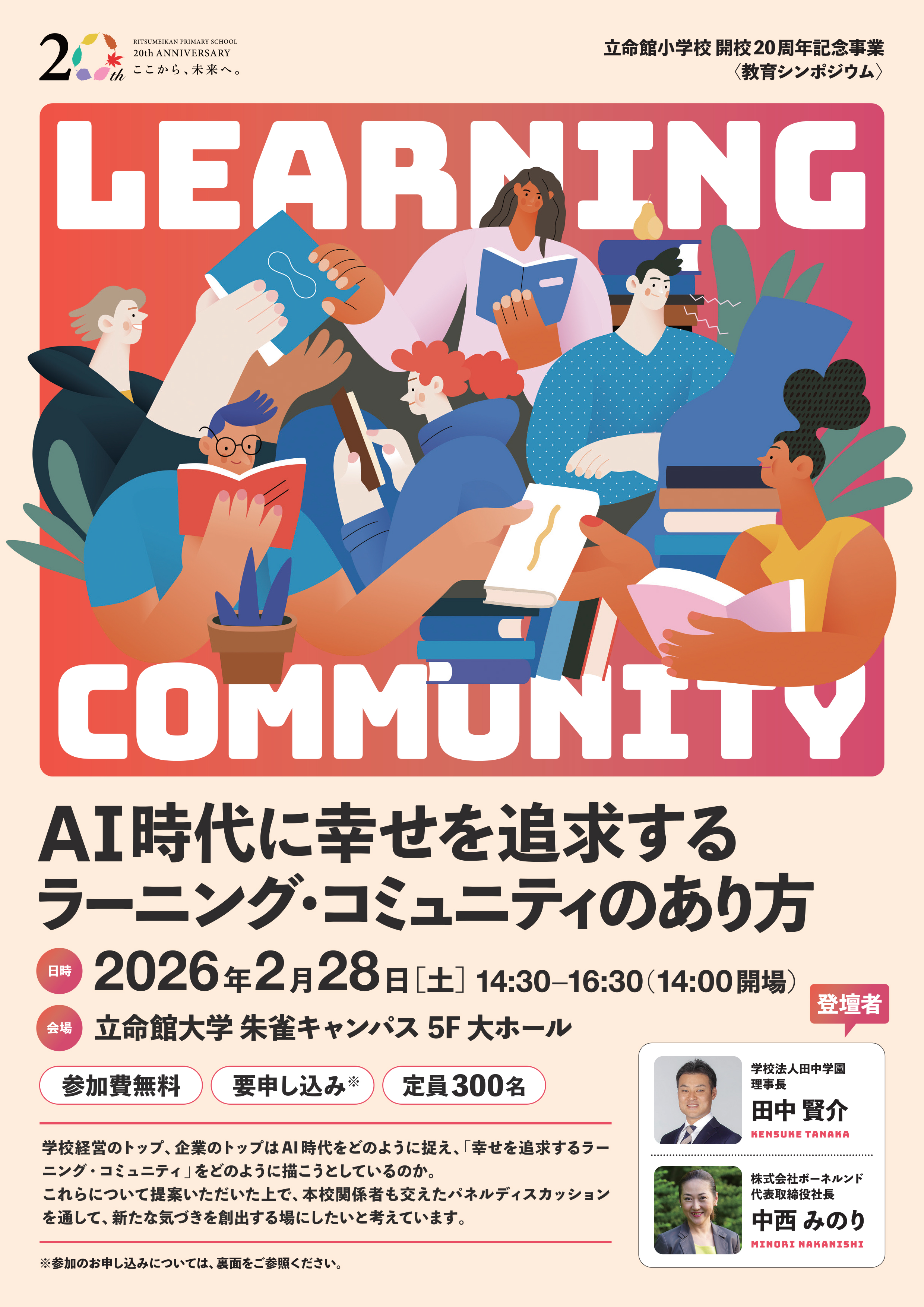 本年度開校20年を迎え、下記の通り「RITS ラーニング・コミュニティフェス(授業公開&ワークショップ)」、及び「教育シンポジウム」を開催いたします。