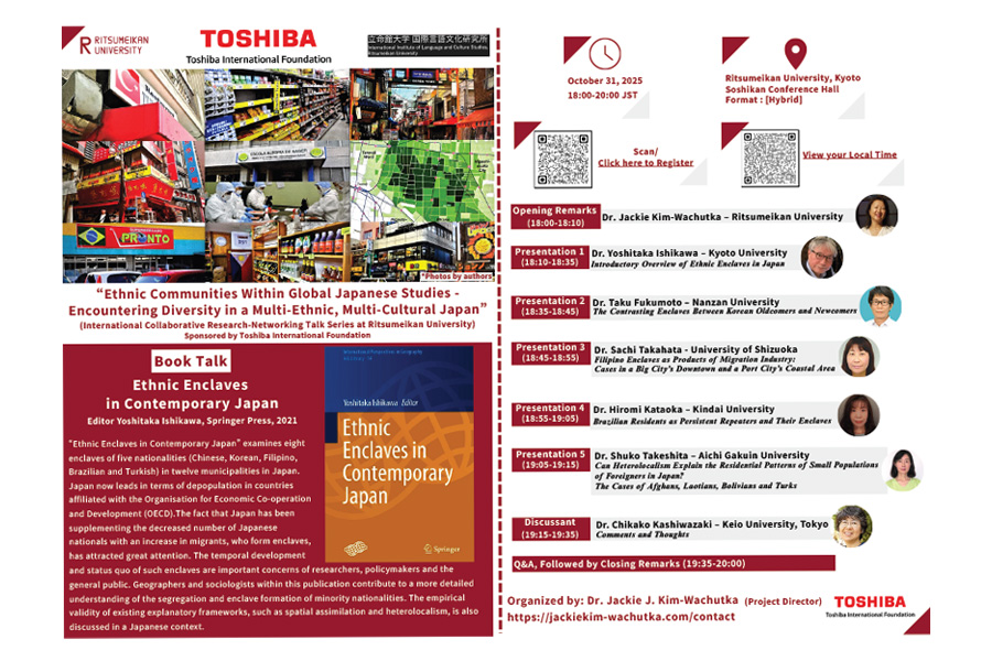 【10/31(金)】国際ワークショップ “Ethnic Communities Within Global Japanese Studies”開催!(後援:東芝国際交流財団)