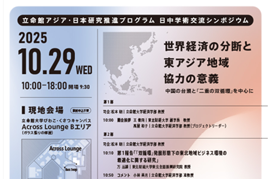 【10/29(水)】日中学術交流シンポジウム開催!(立命館アジア・日本研究推進プログラム「世界経済の分断と東アジア地域協力の意義」)