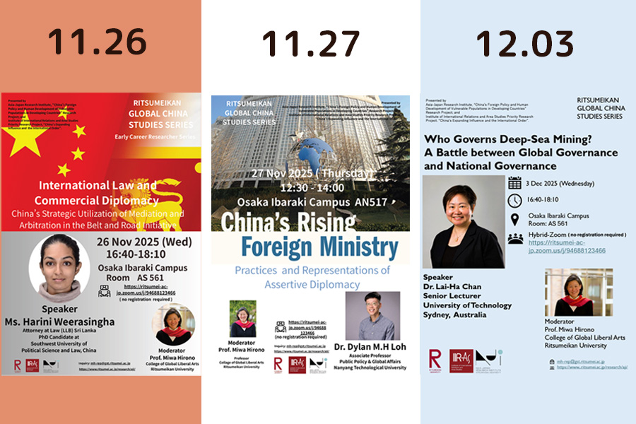 【11/26, 27, 12/3】Global China Studies Seminar Series Fall 2025: 3回連続セミナー開催のお知らせ
