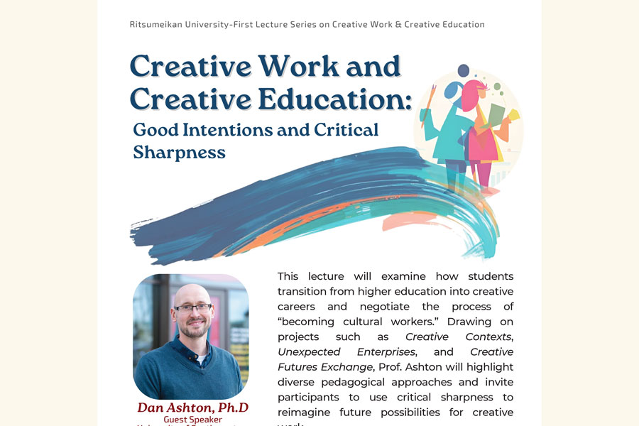 【11/26(水)】Lecture Series on Creative Work & Creative Education開催!“Creative Work and Creative Education: Good Intentions and Critical Sharpness” (Prof. Dan Ashton)