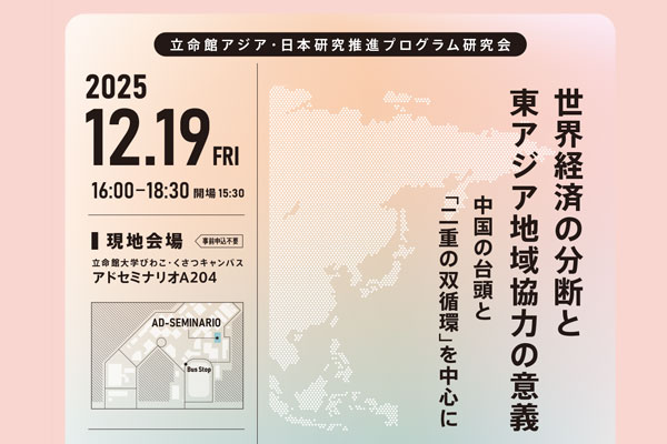 【12/19(金)】AJI研究推進プログラム研究会開催!「世界経済の分断と東アジア地域協力の意義:中国の台頭と『二重の双循環』を中心に」