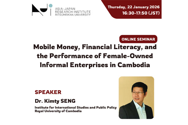 【1/22(木)】AJI International Workshop: Dr. Kimty SENG, “Mobile Money, Financial Literacy, and the Performance of Female-Owned Informal Enterprises in Cambodia” (Organized by Dr. Usman Alhassan)