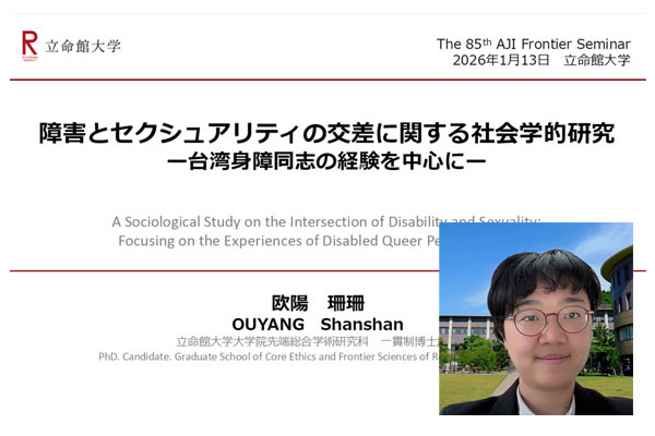 【1/13(火)】第85回AJI研究最前線セミナー開催!欧陽珊珊氏「障害とセクシュアリティの交差に関する社会学的研究:台湾身障同志の経験を中心に」