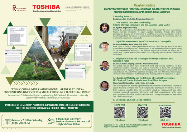 【2/7(土)】国際ワークショップ開催!“Ethnic Communities within Global Japanese Studies: Encountering Diversity in a Multi-Ethnic, Multi-cultural Japan”(後援:東芝国際交流財団