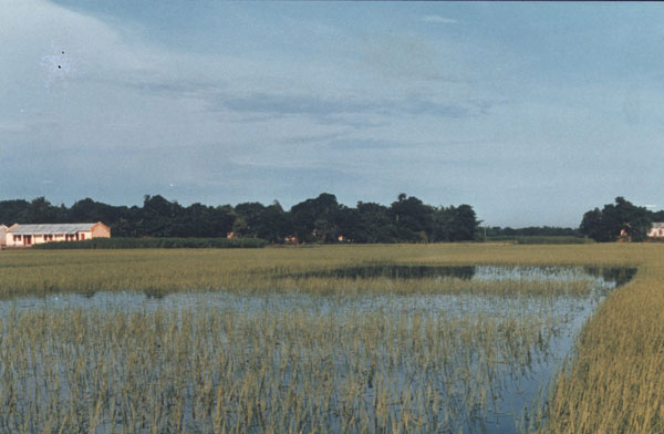R村に赴任した8月は雨季の盛りで、視野に飛び込んできたのは一面にひろがる生育途中の穂が出ていない稲田であった。10月に入ると雨の日が少なくなり、11月には田から氾濫水がひき、稲は収穫期を迎えた。驚いたのは、稲の草丈は3m近くもあり、湛水した田の水深は1~2mであったことである。幅5mはあったと思われる用水路の堤は、耕地に高く土盛りされてできていた。田に育っていたのは、深水稲あるいは浮稲ともいわれるアモン品種であった。日本の私の実家は兼業農家で稲には慣れ親しんでいたが、深水稲はまったく私の予想を超えていた。R村の自然環境を一年間通じて一度はみておかないと迂闊には栽培普及すべきではないと、改めて思わざるをえなかった。普及活動を行わず、乾季の間もモデル・ファーム整備に精をだした。