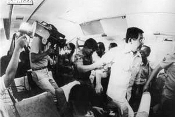 そして1983年8月に亡命先のボストンから帰国したベニグノ・アキノJr.が、白昼のマニラ空港で搭乗していた飛行機から2人の国軍兵士に前後をはさまれて連行されタラップを降りてゆく途中、後ろから後頭部を銃撃されて暗殺された。野党のリーダーと目されていたニノイ(アキノJr.の愛称)の真昼間の暗殺を契機に反マルコスの市民運動が急速に盛り上がった。街頭デモ("street parliament")や集会が頻発し、最終的にはピープルパワー革命(1986/2/22~25)によってマルコス体制は崩壊した。大統領一家はマラカニアン宮殿からヘリコプターでクラーク米空軍基地へ逃れ、そこから軍用機でハワイに亡命した。マルコス大統領は在任中の人権弾圧や汚職・不正蓄財などを厳しく批判され、その遺体をフィリピンに連れ戻したいとの遺族の希望は長らく認められなかった。しかしドゥテルテ大統領(2016年6月〜2022年6月)のときに遺体の帰還と国家英雄墓地への埋葬が認められ、マルコス大統領の評価が大きく変わる契機となった。