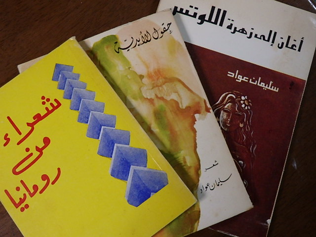 アブー・リヤードは、カフェ・ラウダではいつも窓際の席にぽつねんと座っていた。シリア人とは思えないくらい上着もシャツも靴も、身に着けるものには無頓着。そしていつもハマの水車がパッケージに描かれている安たばこのナーウーラをくわえていた。ときおりポケットから紙切れの束を出すと、何か書き込んでいた。分かりやすい書体だった。印刷業者が間違えないようにね、とのこと。この人は何か書く人?と思ったまま、世界を見放したような寂しげな表情、そしてナーウーラの煙のせいか、たまに発する絞り出すようなかすれた声が気になって、何も聞くことができなかった。ある日、いつものように声をかけてくる新聞記者のアフマド氏が言った。お前、アブー・リヤードのこと知ってるのか。この人、スライマーン・アッワードだよ。聞いたことのない名前だった。いいか、スライマーン・アッワードは、シリアで初めて散文詩を書いた人。あのアドニスやマフムード・ダルウィーシュもみんなこの人から学んだんだ。そうだよな。アブー・リヤードは、そう、そう、と言いたいのか、はにかみながらも嬉しそうに笑った。詩に生きると言っては大げさかもしれないが、アラブ世界の人々は、詩を人生の糧とし、言葉が醸し出す空気、それに酔う快感を知りつくしている人々である。シリアの人々もその例に漏れない。人を酔わせる言葉を届ける人、詩人は、人々のあこがれ、尊敬の的である。とんでもないことを聞いてしまった。新聞や雑誌の文芸欄に注意すると、ときおりアブー・リヤードの詩やインタビューが掲載されることがあった。韻律に縛られた古典詩の殻を打ち破り、言葉を解放した散文詩の先駆者は、1940年代から作品を発表し始めていたらしい。一度、ダマスカス中の女性が私の詩集を抱きしめていたことがあったかな、と遠い昔を懐かしむかのようにつぶやいたことがあった。1979年、前年久しぶりに出版されたという詩集にサインをしてもらったとき、巻頭の言葉についてちょっと説明してくれた。詩人に無理強いしてはならないということ。書くべきときは詩人が知っているということ。
