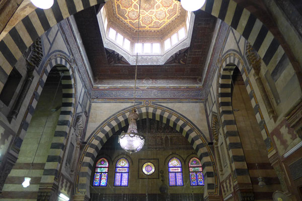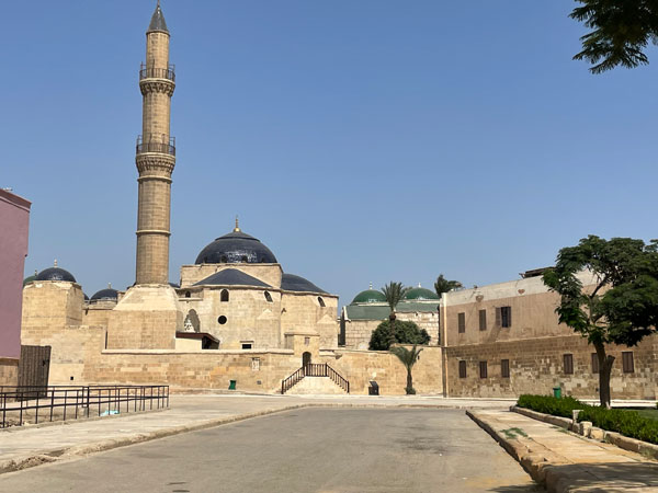 次の画期となるのは、オスマン朝の支配下に編入された16世紀後半からである。帝都イスタンブルで流行したようなマムルーク朝期に比べると低く広い大ドームを持つモスクが好まれるようになる(写真6)。また、ミナレットの形は、スラリとした鉛筆型に変わっていく。墓建築でもあまり巨大なドームは作られず、柱を用いて開放的になり、ピラミッド型の屋根をいただくなどの変種も現れる。イズニクタイルやシリア製の彩色豊かな絵付けタイルで腰壁を覆うこともある。