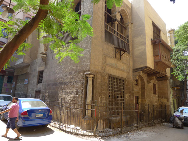 このように流行が移っていく中、敢えてマムルーク朝風に作ったモスクからは、復古的な意識が汲み取れる。さらに、前時代からの継続性を保つのは、世俗建築である。サビール・クッターブは、小規模建築で寄進しやすいためか、カイロ旧市街のあちこちに建設される(写真7)。一階が給水所で二階が子供たちのコーラン学校となった。ウィカーラ(・ラブア)と呼ばれる商館(そこに付属する賃貸住宅)は、スークを構成する重要な要素である。驚くべきことは、こうした世俗建築や住宅では、ローマ時代などイスラーム化以前の古材(コラムと呼ばれる円柱)が使われる。また、オスマン朝期の建築について、カイロとデルタの街々の様式が異なる点は面白い(写真8)。それ以前の場合は、規模や贅投入の違いこそあれ、基本的には同質の様式が採用された。
