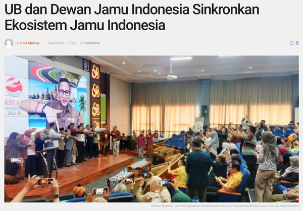 出典:https://kanal24.co.id/ub-dan-dewan-jamu-indonesia-sinkronkan-ekosistem-jamu-indonesia/(2024年2月25日閲覧)